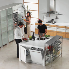 Začneme-li přemýšlet o naší kuchyni, měli bychom se nejdříve rozhodnout, jaké pracovní sestavě dáme přednost. Nejjednodušší a zároveň nejlevnější je takzvaná rovná linka. Pak je tu řešení kuchyní do tvaru ?L? případně do ?U?. Zde získáte výhodu, že se méně nachodíte a vaření je tak mnohem pohodlnější než u klasické rovné linky. Finančně nejnáročnější a přitom nejpohodlnější je takzvané dvojstranné řešení. Dále je tu uspořádání pracovních zón. Jsou tři ? prostor na vaření jídla, prostor na přípravu jídla a plocha na mytí nádobí. Vlastní pracovní plocha přitom téměř vždy odděluje varnou a mycí část. Ohledně posloupnosti by se mělo začínat dřezem, pak pokračuje pracovní plocha pro přípravu jídla a končí se takzvaným varným centrem, což zpravidla bývá sporák.