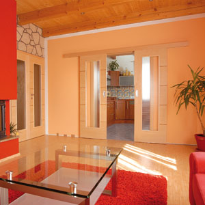 Dřevo dodává sklu jakousi jistotu bytelnosti, masivní rámy působí spolehlivě. Navíc se hodí téměř do jakéhokoliv interiéru. Prosklená plocha je i přes široké dřevěné lemy pro světlo dostatečně propustná, někde pomohou i prosklené části vedlejších a horních stěn, takzvané světlíky. Tyto dveře lze na trhu najít nejen v podobě sériových produktů, ale i vyrobené na zakázku. Z hlediska otevírání mohou být klasické otočné, posuvné i kyvné (lítačky). U posuvných dveří je nutné rozlišovat systém ?na stěnu?, kdy se dveřní křídlo pohybuje podél zdi, nebo ?do stěny?, kdy křídlo zajíždí do prostoru ve zdi. Zatímco první varianta nevyžaduje speciální stavební přípravu, pro druhou je nutným předpokladem tzv. stavební pouzdro. Sklo lze volit čiré, satinované, barevné, leptané do vzorů nebo vitrážové.