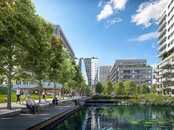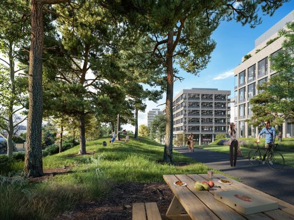 Vysázeno bude nejméně 425 nových stromů. V rámci architektonického řešení bude využita zeleň také pro konstrukce v parteru a na plochých střechách staveb, což množství zeleně rozšíří o dalších 3 400 m