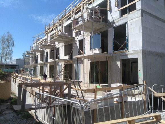 Těsně před dokončením hrubé stavby zahájil generální dodavatel TOMA Olomouc navazující stavební práce: montáž oken s trojskly a instalaci vnitřních rozvodů.