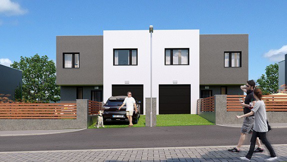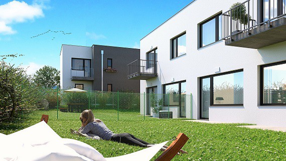 Každý dům má balkon, zahradu, garáž a venkovní parkovací stání. Domy o velikosti až 154,57 m
