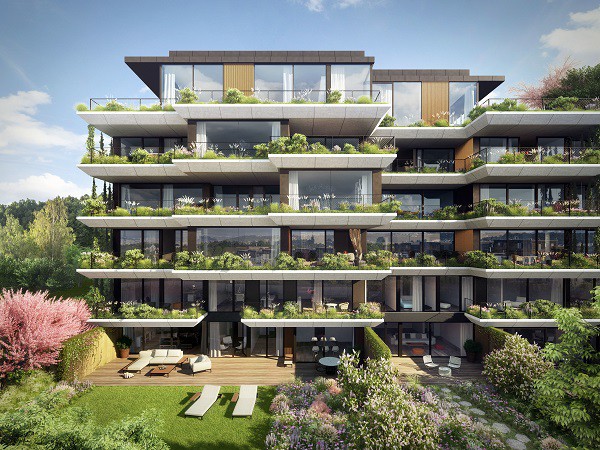 Ne náhodou nese rezidenční projekt Sakura název po okrasné japonské třešni. Tento růžově kvetoucí strom bude vysazen nejen na střešních terasách, ale také v přilehlém parku a soukromých zahradách. Architekti z Jestico + Whiles úzce spolupracují se zahradními architekty z ateliéru Flera. Výsledkem je zeleň, která obíhá jako zahrada po obvodu každého patra a vytváří příjemnou clonu mezi soukromým prostorem bytů a exteriérem. Zelená fasáda z popínavých rostlin a bujná vegetace v rámci celého projektu nebude lahodit pouze oku, ale bude plnit také praktickou funkci. V létě budovu ochrání před přehříváním a v zimě naopak sníží náklady na její vytápění díky kvalitní izolaci.